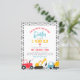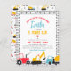 Budget construction-themed boy birthday party invitations. Celebrate your little one's special day with this modern building trucks birthday invite! A fun birthday party invitation template for a construction-themed birthday party! This design features three construction vehicles: a tractor, a digger, and a cement truck along the bottom of the card. The invite reads "Stop the traffic, close the road!" with the birthday boy's name and age ending in "years old!" to rhyme! Below, there is a mini stop sign separating the event details from the top of the text. The event details are written in big, bold capitals, with a custom message (we have chosen "looking forward to seeing you!") at the bottom. Behind the typography, there is a brick pattern around the edge of the card to fit with the building theme! The colour scheme is a bright mix of red, blue, and yellow. Cards reverse to a pattern of other construction vehicles, cranes, dump trucks, bulldozers, excavators, and even a few little trees! Kids party invites that are perfect for any age, 1st, 2nd, 3rd, 4th, 5th, 6th, and even 7th or 8th! There is a standard invitation version of this design available in our store. This is a budget paper option and we only recommend the semi-gloss finish. To customise these cards, click on "Personalise" and edit the text in the boxes provided. For more advanced edits, scroll to "Customise further" and use Zazzle's easy-to-use design tool to make these cards uniquely yours! Feel free to message me with any questions or custom order requests - I'll be happy to help!