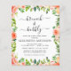 Budget Coral, Peach and white Floral and Eucalyptus Greenery Botanical Spring or Summer Brunch and Bubbly Champagne Bridal Shower Invitations - includes beautiful and elegant script typography with modern botanical flowers and greenery for the special Bride to Be day celebration for an upcoming Wedding.