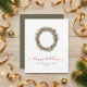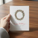 Budget Corporate Happy Holidays Festive Pine Wreath Holiday Card features a minimalist, rustic pine bough wreath with berries and pine cones. Happy Holidays in an elegant, vintage style font sits above your personal details. Space on the back for your logo and personal message make this the perfect card for your minimalist, elegant season. **Our BUDGET paper is smaller, lighter, and more delicate, but still beautiful! Don't forget the envelopes!** If you need assistance or matching items, please contact us at cedarandstring@gmail.com.