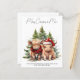 Looking for the cutest Christmas cards of the season! Our Highland Cow duo featuring two holiday calves are sure to bring a smile to your loved ones' faces. The design is adorable with the calves wearing a Santa hat and a plaid winter scarf, surrounded by trees and a cosy winter watercolor background. The message "Merry Christmas to Moo!" completes the look.