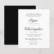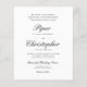 This classy formal wedding invitation features traditional text in elegant black cursive script and small capital fonts on a white background. The reverse is solid black.