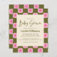Budget Cute Retro Boho Chequerboard Flower Green Pink Baby Shower Invitation