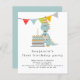Budget Cute Dinosaur Cake 1st Birthday Invitation. A budget price SMALLER 4.5” x 5.6” alternative. Available in a SEMI GLOSS 110 lb CARD STOCK which is the default option (recommended for invitations, similar to the thickness of a postcard), OR a SATIN FINISH 80 lb THIN PAPER STOCK (more suited to thin enclosures). The header is large in stylish lowercase with the details beneath. Easily personalise the text. A coordinating powder blue is on the back