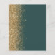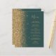 The left-hand edge of this elegant modern wedding menu features a gold faux glitter border. The customisable text combines gold-coloured whimsical handwriting script and copperplate fonts on a dark green background. The reverse side features a matching dark green and gold glitter design.