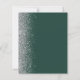 The left-hand edge of this elegant modern wedding save the date card features a silver faux glitter border. The customisable text combines silver grey handwriting, copperplate and italic fonts on a dark green background. The reverse side features a matching green and silver design.