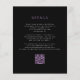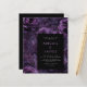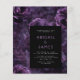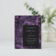 This elegant, moody wedding invitation features a lush, romantic watercolor pattern of deep purple roses. Customise the pale purple and silver grey text in stylish fonts on a black rectangle. The reverse side provides space for wedding details on a solid black background, along with a QR code guests can scan to visit your website and RSVP.