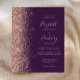 The left-hand edge of this elegant modern wedding invitation features a rose gold faux glitter border. The customisable text combines pale rose gold blush coloured handwriting, copperplate and italic fonts on a dark purple background. The reverse side features a matching purple and rose gold design.