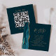 Budget Dark Teal Gold Agate Wedding QR Code RSVP Enclosure Card