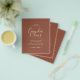 Elegant modern dark terracotta, earthy, cinammon, tuscany, sepia skin (colour names) monochrome wedding item designed by LeahG®, founder of the LowBudgetWeddingNetwork®. Text templates on both sides allow you to put all your required QR scanning code, RSVP, reception, accommodation, gift registry, and directions details. Add a photo, logo, or small map to the design as needed using the design editing tools. This enables you to save money by avoiding the need to purchase additional enclosures and detail cards.📌 Pin this design to your Pinterest wedding mood board so you can start your get your wedding theme planning off to a great start! Monochrome designs are perfect for any season including fall, summer, spring, and winter. You can also add your own graphics as an overlay to add your own unique touch to your theme. Zazzle has a FREE LIVE DESIGNER service who can assist you with this. For ideas view my wedding collections here: www.giftsandinvitations.com.
