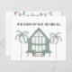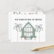 The front deck of a modern pastel green beach house is decorated with festive lights, banners, and gift boxes, ready for your first Christmas in a new home. The palm trees suggest that your new address is in Florida or another southern state. The holiday greeting on front of the card reads, "We're decking new decks this Christmas." You can revise this text and all text on back of the card with your own words by using the personalise template's dropdown form.