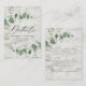 Beautiful budget delicate eucalyptus foliage wedding details card. Part of a modern collection. Modern rustic farmhouse barn light grey washed wood backer design.