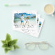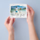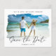This is a budget destination wedding save the date card using an elegant calligraphy style font along with a modern photo design. This is a budget save the date printed on a flyer.
