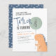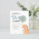 A cute budget birthday party invitation featuring a hand-drawn dinosaur holding a balloon. Inside the balloon is the birthday boy's age. The invite text is rotated and aligned to the left for a fun layout. The top of the invite reads "Stomp, chomp & roar. Let's party like a dinosaur!". Below, your little one's name is written in a handwriting-style font. The party information is written at the bottom with extra space for a custom message. Cards reverse to a pattern of organic shapes against a blue background. The colour palette of this design is blue, orange, and green. Perfect for any age child! Colourful dinosaur-themed budget-friendly birthday invitations. A standard invitation version of this design is available in my store, this is the budget version. Please note, we only recommend the semi-gloss finish on the budget paper - the satin finish is very thin. Feel free to message me with any questions - I'll be happy to help!