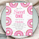 This cute Budget Doughnut Girl's First Birthday Party Invitation is decorated with pink watercolor doughnuts and stylish typography.