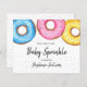 This cute baby sprinkle invitation features watercolor doughnuts in pink, blue and yellow.