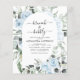 Budget Dusty Blue Floral Roses and Eucalyptus Botanical Greenery Watercolor Spring or Summer Wedding Brunch and Bubbly Champagne Bridal Shower Invitations - includes beautiful and elegant script typography with modern tropical botanical flowers and greenery for the special Bride to Be celebration.