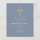 This budget dusty blue cross boy baptism invitation paper sheet is an affordable option that is printed on thinner and smaller paper than the standard invitation card paper. For complete information, please review the 'ABOUT PAPER SHEETS' section on this site. If you're looking for the standard card paper version or matching products, either check out the design collection or visit our Christian stationery store, Guiding Star.