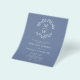 Budget All in One QR Code RSVP Dusty Blue Monogram Botanical Wreath Wedding Invitation Flyer... Our affordable trendy minimalist dusty blue and light gray-blue wedding invitation features a leafy botanical wreath displaying the bride's and groom's monogram initials above personalized invitation text in serif and sans serif typography for a simple and chic wedding invitation. The back of the invitation also displays your wedding website QR code as well as the website's URL itself allowing your invitees to easily RSVP online and view all of the details normally sent in a wedding packet. The example QR code graphic template and all example text can be easily revised with your own information on the personalization template. PLEASE NOTE: The paper for our most affordable budget invitation is 80 lb. weight — the thickness of paper most often used for business and event flyers. Your office supply resource or online store will be able to supply the A6 envelopes for these invitations.
