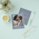 Budget Dusty Blue Wedding Thank You Cards that have a photo on the front and back. The Thank you cards contain a modern hand lettered cursive script typography that are elegant, simple and modern to use after you wedding day celebration.