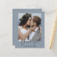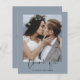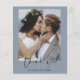Budget Dusty Blue Wedding Thank You Cards that have a photo on the front and back. The Thank you cards contain a modern hand lettered cursive script typography that are elegant, simple and modern to use after you wedding day celebration.