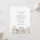 This Budget Dusty Blue Wildflowers All-In-One Wedding Invitation showcases delicate watercolor wildflowers in shades of dusty blue, yellow, and purple on a white background, complemented by contemporary typography. It is fully customisable with the couple's names and wedding details, and with the reception, hotel, RSVP, wedding website, and other information on the reverse side. The formal design and wording will add a touch of elegance to your wedding celebration.
