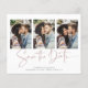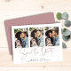 BUDGET Modern Handwritten Save the Date Multiple Photo Card in dusty rose and white in a font that is elegant and evokes a romantic handwritten feel. Designed to use three of your favourite photos for added customisation. Easily add your names and dates for a truly personalised design. **Our BUDGET paper is smaller and more delicate, but still beautiful!** If you need assistance or matching items, please contact us at cedarandstring@gmail.com.
