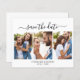 Budget Simple Elegant Calligraphy Script 3-Photo Collage Wedding Save The Date Cards in Black and White. This exquisitely delicate design is tailored precisely for contemporary weddings, exuding an enchanting romantic appeal. Highlighting a graceful 3-photo grid collage and whimsical calligraphy in a hand-lettered swash tail font, these cards symbolise modern elegance. Effortlessly customise them with your treasured wedding details and pictures, offering an affordable yet refined touch to announce your special day.