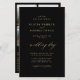 Elegant simple minimalist romantic budget affordable all in one RSVP and guest details black wedding invitation template featuring a classy stylish chic trendy faux gold handwritten calligraphy script, a scanning QR CODE (automatically generated with your website link), and 4 custom photo collage. ++++++++++++ Easy to personalise with your engagement pictures and details on both sides! The invitation is suitable for spring summer autumn fall and winter modern trendy stylish weddings.