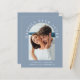 Modern budget-friendly dusty blue wedding invitation featuring your photo in an arch frame and "Happily Ever After" in elegant white typography. Add your first names, wedding date and location. On the reverse side, personalise your invitation in simple white typography.