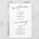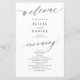 Modern simple minimalist black script trendy clean white ceremony and party BUDGET affordable wedding program template featuring chic trendy romantic elegant calligraphy and custom photo overlay on the backside. ++++++++++++ Easy to personalise with your custom text and picture on both sides!