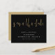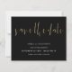 Elegant Calligraphy Gold Black Save The Date. A budget price SMALLER 4.5” x 5.6” alternative. Available in a SEMI-GLOSS 110 lb CARD STOCK which is the default option (thicker for invitations), OR a SATIN FINISH 80 lb THINNER PAPER STOCK (ideal for enclosures). Envelopes are an optional extra and are slightly larger than the card size. Modern elegance with Save The Date in a handwritten style set script in gold.The rest of the text you can easily personalise. The text and background colours can be changed if you wish via the customise further option.