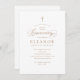 Budget Elegant Gold Cross Calligraphy First Communion Invitation features a delicate modern cross, paired with modern type and beautiful calligraphy script.
