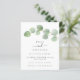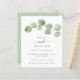 Budget Elegant Eucalyptus QR code Save the Date A budget price SMALLER 4.5” x 5.6” alternative. Available in a SEMI-GLOSS 110 lb CARD STOCK which is the default option (thicker for invitations), OR a SATIN FINISH 80 lb THINNER PAPER STOCK (ideal for enclosures). Add your QR code to your wedding website on the back. An elegant branch of eucalyptus in green with a touch of gold flows from the top right. Easily personalise the text to your own details. You can also change text styles and colours as well as the background colours via the customise further option if you wish.