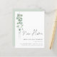 A value for money BUDGET alternative on a smaller size 4.5 x 5.6” semi-gloss 110lbs weight, which is of similar thickness to a postcard (however is not suitable to use as a postcard.). PLEASE NOTE there is ONE invite per sheet. Budget Elegant Eucalyptus Script Moving New Home. Minimalist style to let everyone know your new address with stylish script set typography for the header and easily personalise the rest of the text with your details. A branch of watercolor eucalyptus leaves run down from the top on the left hand side.
