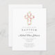 Budget Elegant Floral Pink Cross Baptism Invite
