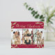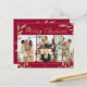 Budget, Elegant, Modern Gold and Burgundy Botanical Leaves 4 Photo Collage Merry Christmas Holiday (thin!) Card. This festive, mimimalist, whimsical four (4) photo holiday card template features a pretty grid photo collage, faux gold foil botanical leaves, winterberries and says Merry Christmas! The „Merry Christmas” greeting text is written in a beautiful hand lettered typography font type on burgundy, bordo or wine red colour background. On the reverse side one horizontal photo with gold frame and faux gold glitter foil leaves arrangement on burgundy. Cheap, pretty Holiday cards for your family and friends in this Christmas and Holiday season.