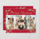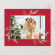 Budget, Elegant, Modern Gold and Red Botanical Leaves 4 Photo Collage Merry Christmas Holiday (thin!) Card. This festive, mimimalist, whimsical four (4) photo holiday card template features a pretty grid photo collage, faux gold foil botanical leaves, winterberries and says Merry Christmas! The „Merry Christmas” greeting text is written in a beautiful hand lettered typography font type on red colour background. On the reverse side one horizontal photo with gold frame and faux gold glitter foil leaves arrangement on red. Cheap, pretty Holiday cards for your family and friends in this Christmas and Holiday season.