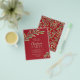 Small 4.5" x 5.6" lightweight paper invitations feature greenery and berries on red and your party information in chic lettering on these Christmas holiday party invitations. These affordable invites are printed on 80 lb paper available in 3 sizes. **NO ENVELOPES INCLUDED, use 5" x 7" envelopes. Be sure to double-check your order before adding it to your cart as what you see on the screen is what will be printed. The Live Design Service can help you with your design layout if needed. MATCHING items in our store.