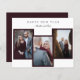 Budget Elegant New Year's 3 photo collage greeting card. Back side has custom message and photo you can edit as well. Features red frame for photos. Designed for newly engaged couples or married couple, but can be used by families as well.