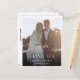 This is an elegant but budget friendly photo wedding thank you card using a stylish font, two simple photos and minimalist layout for a timeless and classic thank you card. This thank you card is printed on a paper sheet.