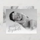 Small elegant 4.5" x 5.6" birth announcements feature your favourite newborn photo, your baby's name and birth stats in chic lettering on the front and three photos, and your names on the back. **TIP: You may want to size the 2 square photos on the back BEFORE uploading them for easy placement. These affordable announcements are printed on 110 lb paper available in 3 sizes. **WHITE ENVELOPES ARE OPTIONAL ON ORDER PAGE. Be sure to double-check your order before adding it to your cart as what you see on the screen is what will be printed. The Live Design Service can help you with your design layout if needed.