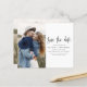 Budget Wedding Save the Date Cards that have a photo on the front and back. The Save the Date cards contain a modern hand lettered cursive script typography that are elegant, simple and modern to use after you wedding day celebration.