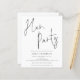 Minimalist Elegant Script Black and White Hen Party. A budget price SMALLER 4.5” x 5.6” alternative on a SEMI-GLOSS 110 lb CARD STOCK similar in thickness to a postcard. There is ONE per sheet. This modern design for your Hen Night Invitees has set elegant script for The main heading at the top and easily personalise with your details beneath. Shown in black and white and you can also change text and background colours on either side if you wish via the Customise Further option.