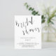 Elegant Script Bridal Shower Invitation. A budget friendly SMALLER 4.5” x 5.6” alternative. Available in a SEMI GLOSS 110 lb CARD STOCK or a SATIN FINISH 80 lb THINNER PAPER STOCK. Envelopes are an optional extra. The main header is in a stylish set calligraphy and the rest of the text you can easily personalise. You can also change text and background colours on either side if you wish via the Customise Further option.