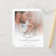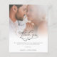 Budget Elegant Script Photo Engagement Thank You. A budget price SMALLER 4.5” x 5.6” alternative. Available in a SEMI-GLOSS 110 lb CARD STOCK which is the default option (thicker for invitations), OR a SATIN FINISH 80 lb THINNER PAPER STOCK (ideal for enclosures). Envelopes are an optional extra and are slightly larger than the card size. A modern design to say thanks after your engagement party, with elegant set script with heart swashes for Thank you, beneath your photo at the top and the rest of the text you can easily personalise. Choose a photo of you both and replace the sample photo in the template placeholder with it.