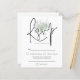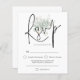A budget price paper alternative. Envelopes are an optional extra. This elegant design has a watercolor foliage motif in sage green and gold tinted in the background at the top with stylish set script for RSVP in black overlaid on top slightly. The rest of the text can be easily personalised to your words.