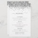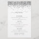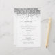 Budget Elegant Silver Glitter Script Wedding Menu. A budget price size 5.5” x 8.5”, on an elegant 110 lb LINEN stock – for a luxury feel at great value, this is perfect for menus, as well as invitations and programs etc. This budget size alternative is also available in other paper choices. The SEMI-GLOSS 110 lb card stock is about the same thickness as a postcard, so also works well for invitations. The FELT 100 lbs paper is buff coloured, NOT white, so adds a rustic touch. The MATTE 80lbs paper stock is bright white, for crisp printing, great for your menus and programs, whilst the SATIN 80lbs paper is thin and light, ideal for enclosures. An elegant script with swashes for the header Menu and a faux glitter border at the top on both sides in gold. Easily personalise the rest of the text to your own details which includes alternatives for your vegan or vegetarian options.