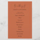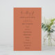 Budget Elegant Text Terracotta Wedding Program. Size 5.5” x 8.5” at a budget price, on an elegant 110 lb LINEN stock – for a luxury feel at great value, this is perfect for programs, as well as invitations and menus etc. This budget size alternative is also available in other paper choices. The SEMI-GLOSS 110 lb card stock is about the same thickness as a postcard, so also works well for invitations. The FELT 100 lbs paper is buff coloured, NOT white, so adds a rustic touch. The MATTE 80lbs paper stock is bright white, for crisp printing, great for your menus and programs, whilst the SATIN 80lbs paper is thin and light, ideal for enclosures. PLEASE NOTE THE OPTIONAL ENVELOPES ARE A LITTLE BIGGER IN SIZE AT 6.75” x 9” approx. An simple typographical design for your wedding programs. The main header is in an elegant set handwriting style script and the rest of the text you can easily personalise. You can change the text and background colours if you wish to match your wedding colour theme via the Customise Further option as well as other editing you may require. If you need any assistance with your editing of this design, please message me.