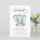A cute budget-friendly baby boy shower invitation with "A Sweet Little Peanut Is On His Way" written in soft grey modern typography and stylish script, and a pastel blue watercolor of a baby boy elephant. Personalise the mother's name and shower details in simple grey typography.