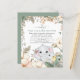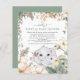 A budget price SMALLER 4.5” x 5.6” alternative. Available in a SEMI-GLOSS 110 lb CARD STOCK which is the default option (thicker for invitations), OR a SATIN FINISH 80 lb THINNER PAPER STOCK (ideal for enclosures). Envelopes are an optional extra and are slightly larger than the card size. For those times when it is not possible to be together in person, a virtual Baby Shower is a great alternative.This design has a cute baby mum and her baby elephant with florals and foliage and easily personalised text. A coordinating sage green background is on the back. You can also change the fonts and text colours if you wish via the Click to Customise Further option as well as the background colours of either side.